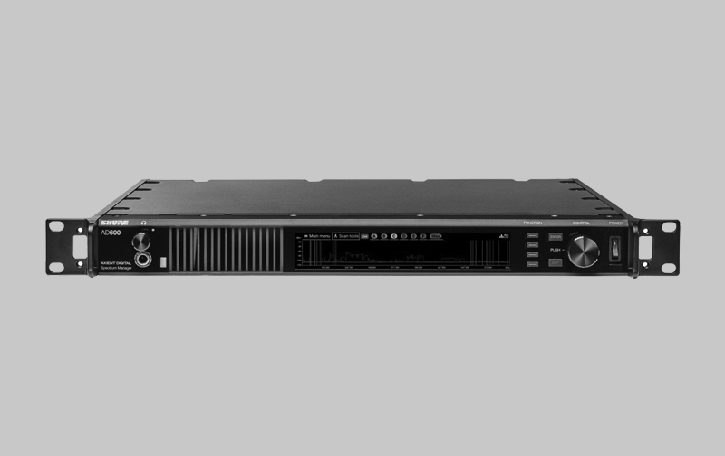Shure Axient® Digital AD600 Digital Spectrum Manager delivers real-time, wide-band spectrum scanning and monitoring from 174 MHz to 2.0 GHz, spectrum analysis, and frequency coordination in a single rack unit. Six antenna connections deliver multiple coverage options while Dante connectivity provides advanced audio monitoring of your network. Use the USB port to export, import, or save backup scans, event logs, and other important data. The AD600 is an essential addition to your Axient Digital professional audio setup.