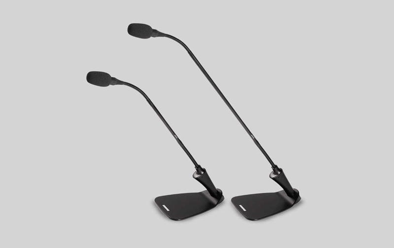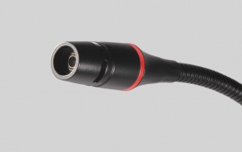 Gooseneck cardioid microphone consists of integrated desktop base, inline preamplifier, LED lighting for use in installed sound reinforcement or conferencing. Features a dual-section gooseneck for positioning and Commshield RF Filtering for interference.