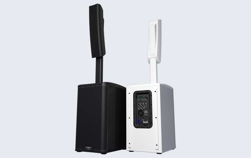 - 3-way loudspeaker system featuring a 12-inch (305 mm) subwoofer, two high-excursion 4-inch (102 mm) midrange drivers and a 1-inch (25.4 mm) HF compression driver combined with the proprietary QSC LEAF™ waveguide.